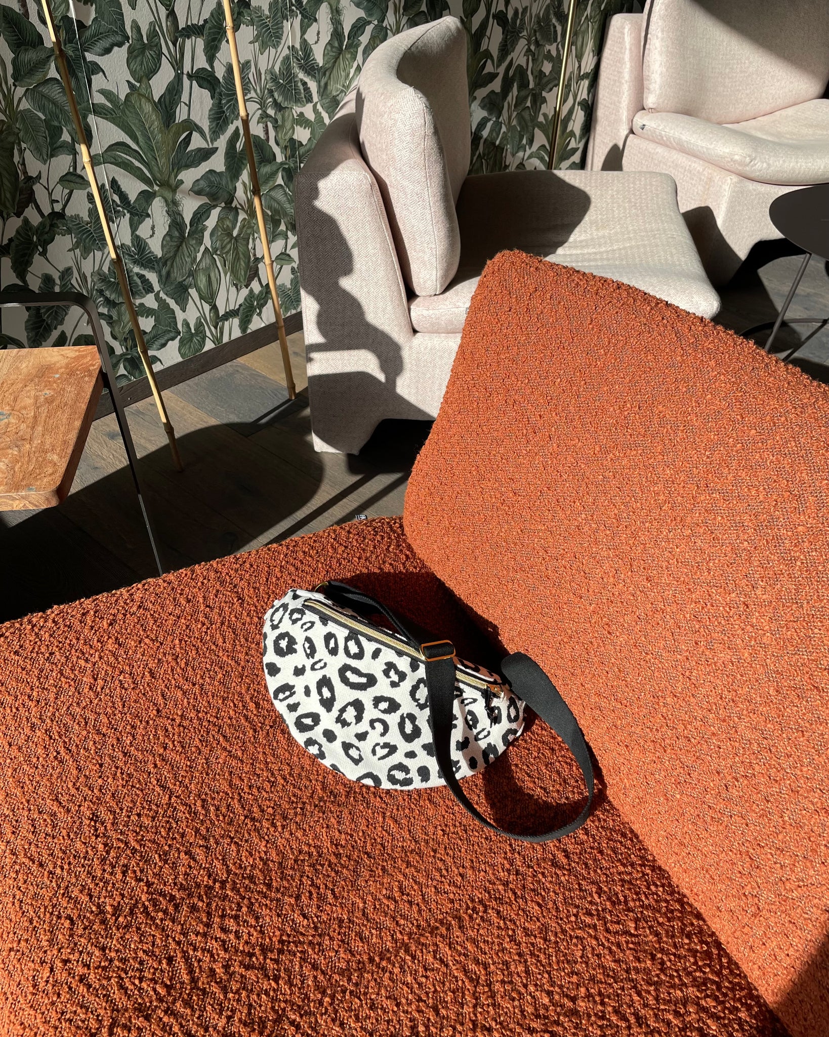 Perfekt für alle, die eine stylische Bauchtasche aus nachhaltigem Öko-Tex Jacquard mit zeitlosem Leopardenmuster und hohem Tragekomfort suchen! Die ELA Bauchtasche wird mit Liebe handgefertigt und vereint edlen Jacquard in Schwarz-Weiß mit hochwertigen Metallakzenten in Gold oder Silber. Vielseitig tragbar als Crossbody-Bag, Bauchtasche oder lässig über die Schulter – jede Tasche ist ein Unikat!