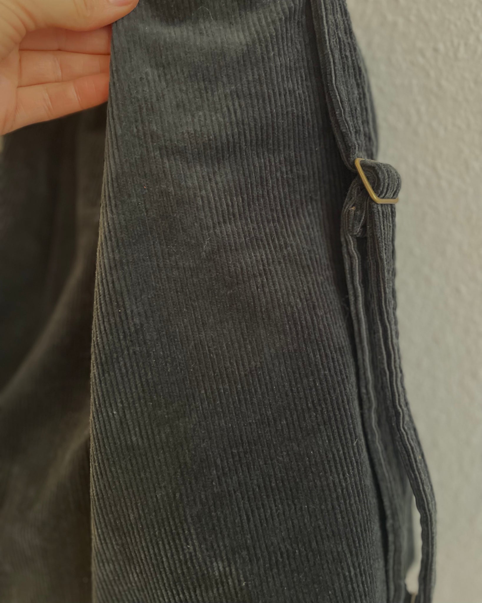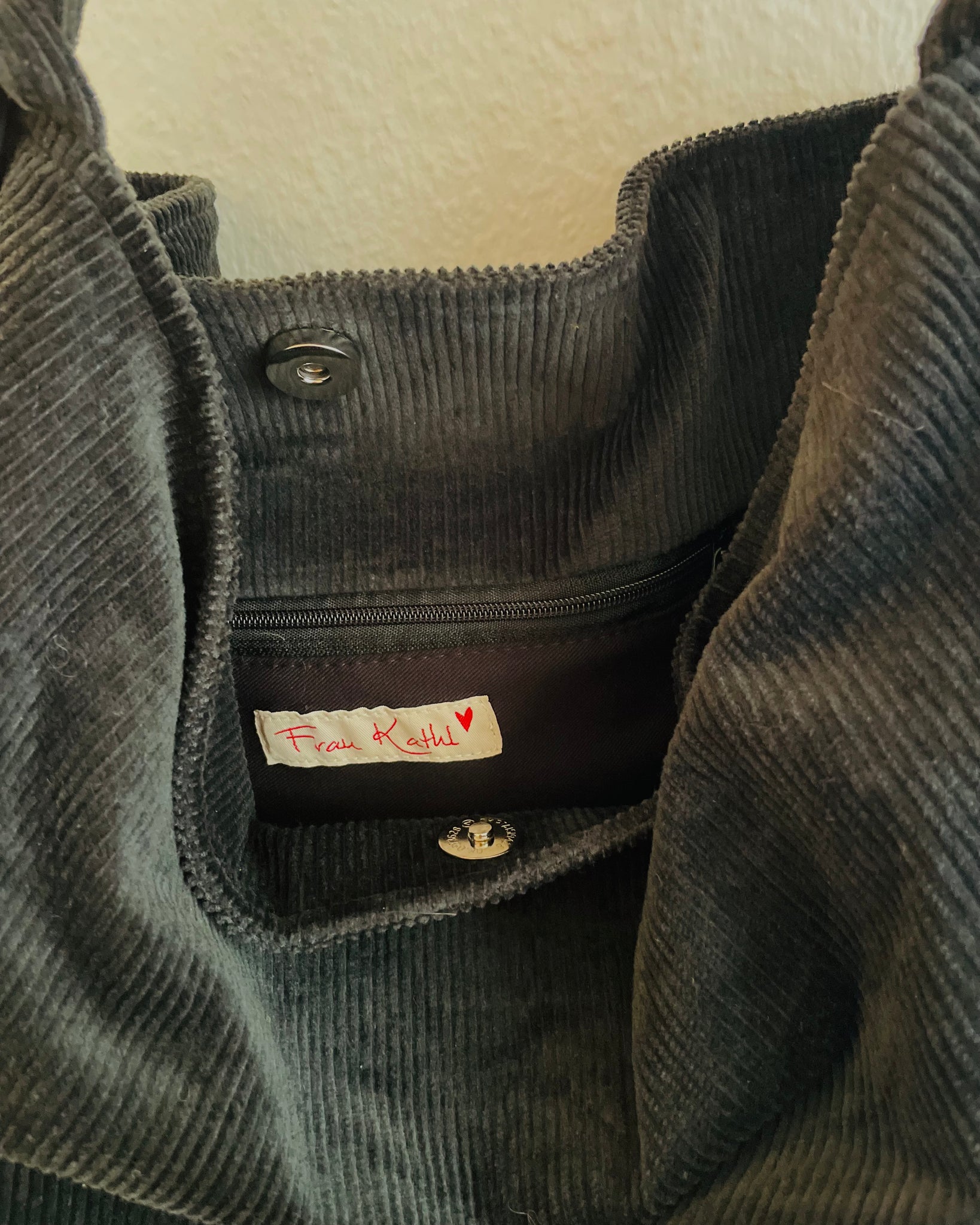 Der feste Feincord in Dunkelgrün-Schwarz sorgt für eine angenehme Haptik und eine stabile Form. Die Tasche wird mit einem praktischen magnetischen Druckknopf sicher verschlossen. Innen ist Inge mit einem schwarzen Öko-Tex-Futter ausgestattet und verfügt über eine praktische Reißverschluss-Innentasche für deine Essentials.