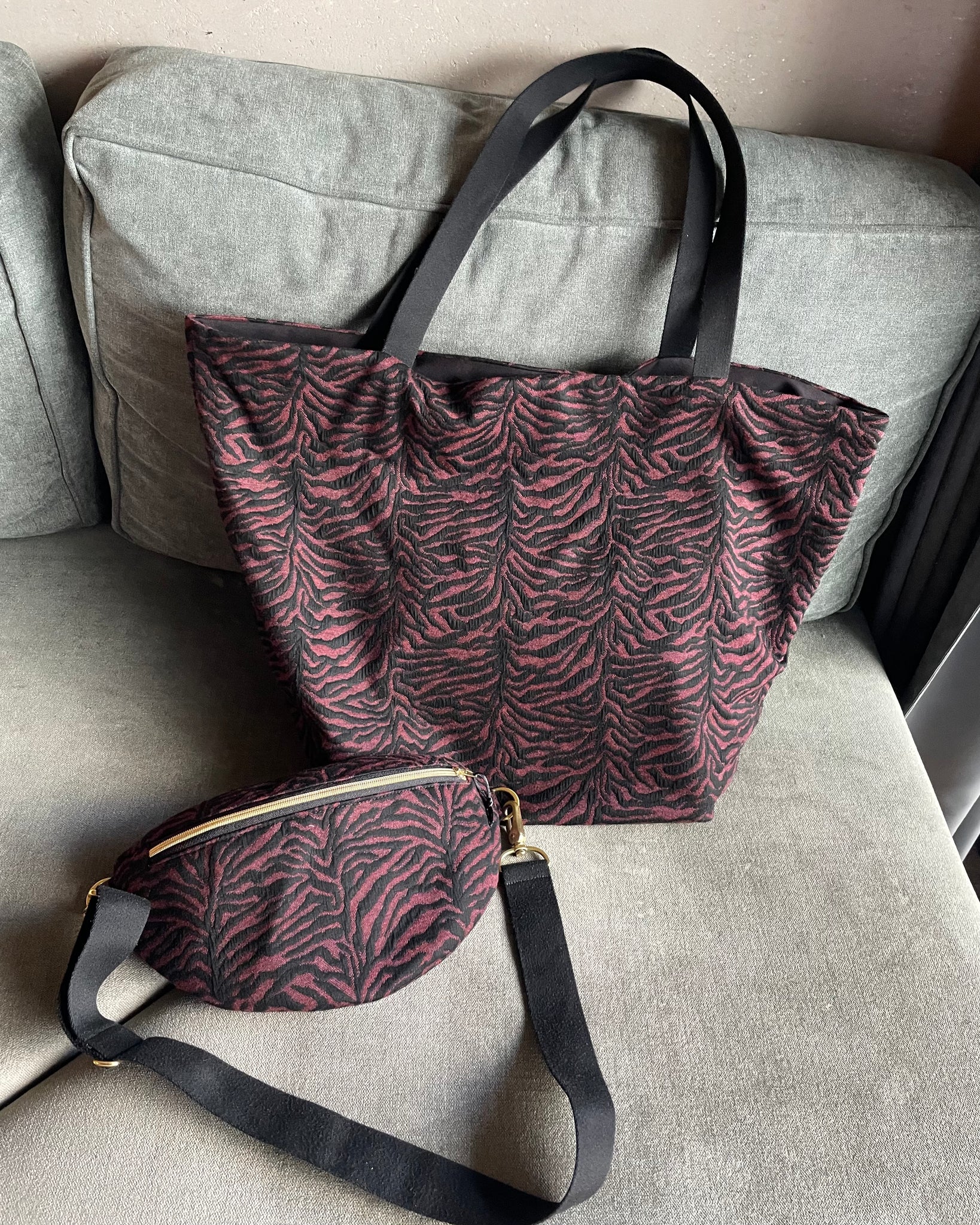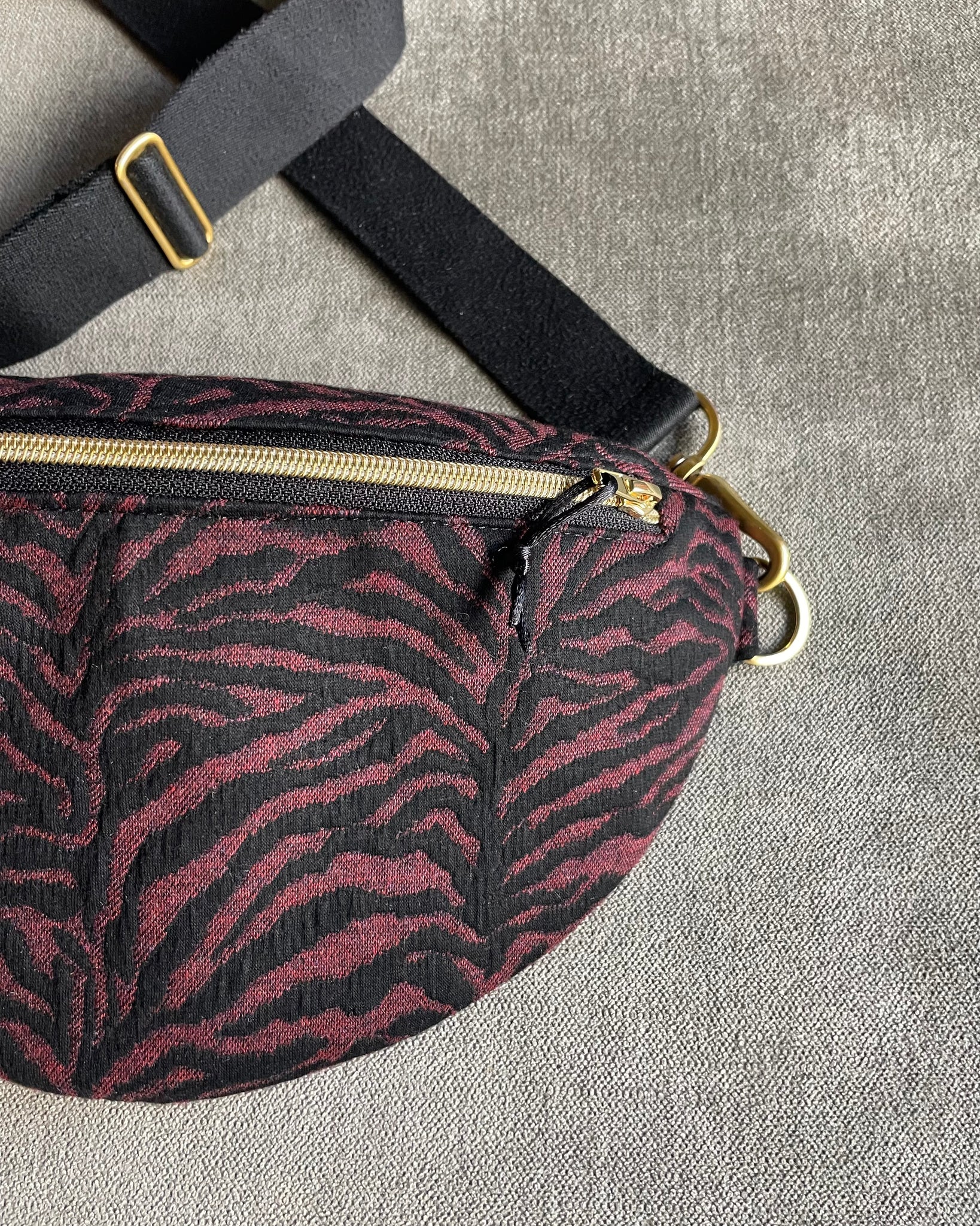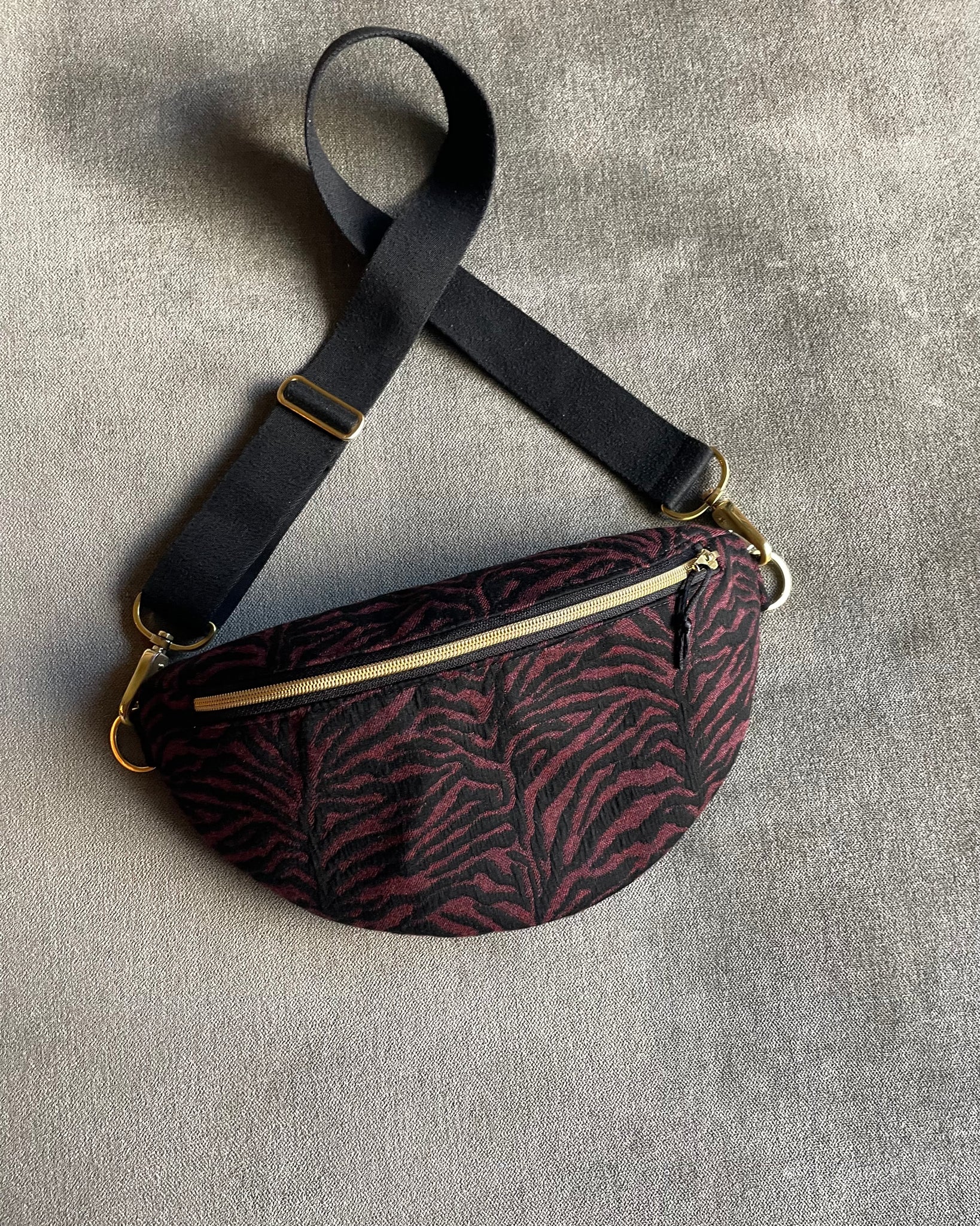 Stylisch, wild und trotzdem elegant – die Bumbag „Ava“ ist dein neues Statement-Piece für jeden Tag. Mit ihrem markanten Animal-Muster in dunklem Bordeaux und Schwarz zieht sie alle Blicke auf sich. Die goldfarbenen Details setzen edle Akzente, während die praktische Form und der verstellbare Gurt für maximalen Tragekomfort sorgen – ob beim Stadtbummel, auf Reisen oder beim Festival.